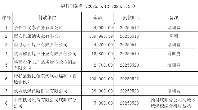 请查收银行到款单(2025.5.12-2025.5.25)。
