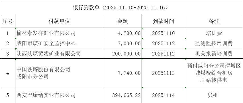 银行到款单(2025.11.10-2025.11.16)
