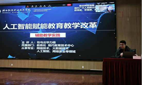 下午,教务处包乌云毕力格老师作题为“人工智能赋能教育教学改革辅助教学实践”的报告,以人工智能赋能教育的政策背景为切入点,并引入国内外政策及专家观点,凸显其在教育变革中的关键作用。随后详细介绍并演示了AI辅助教学实践的多个内容,其中包括学情分析、教学资源制作及技术文案写作等。最后,他对人工智能在教育教学方面所具备的优势及平台进行了介绍,为教师运用AI技术教学提供了基础保障。