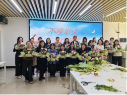 活动现场花香四溢、暖意融融,各类鲜花绿植错落摆放,为整场活动增添了浪漫温馨的气息。在专业花艺老师的细致讲解与指导下,女教职工们兴致盎然地投入到插花创作中,从花枝修剪、造型搭配到层次布局、色彩调和,一步步精心雕琢、巧手创作。过程中,女教职工们相互交流心得、分享技巧,欢声笑语萦绕全场,既缓解了日常工作的疲惫,也拉近了彼此之间的距离,增进了情感交流与团队协作意识。