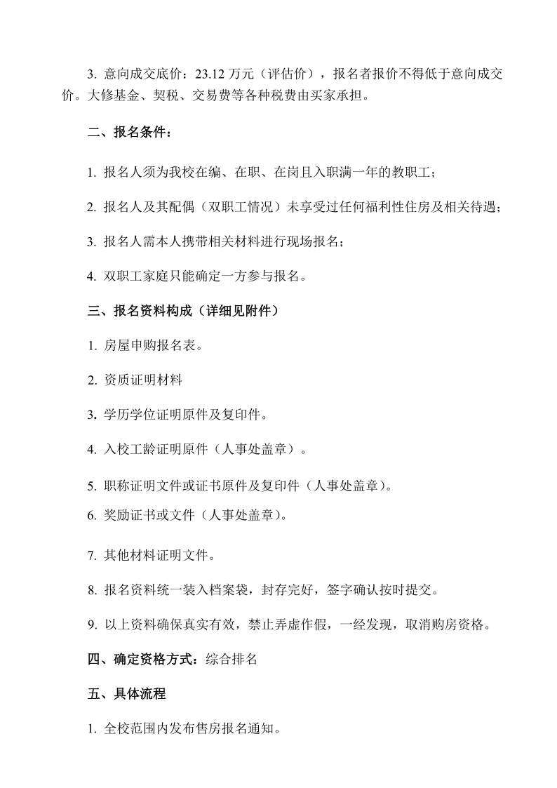 关于出售临潼校区住宅楼1幢3单元30501室的通知
