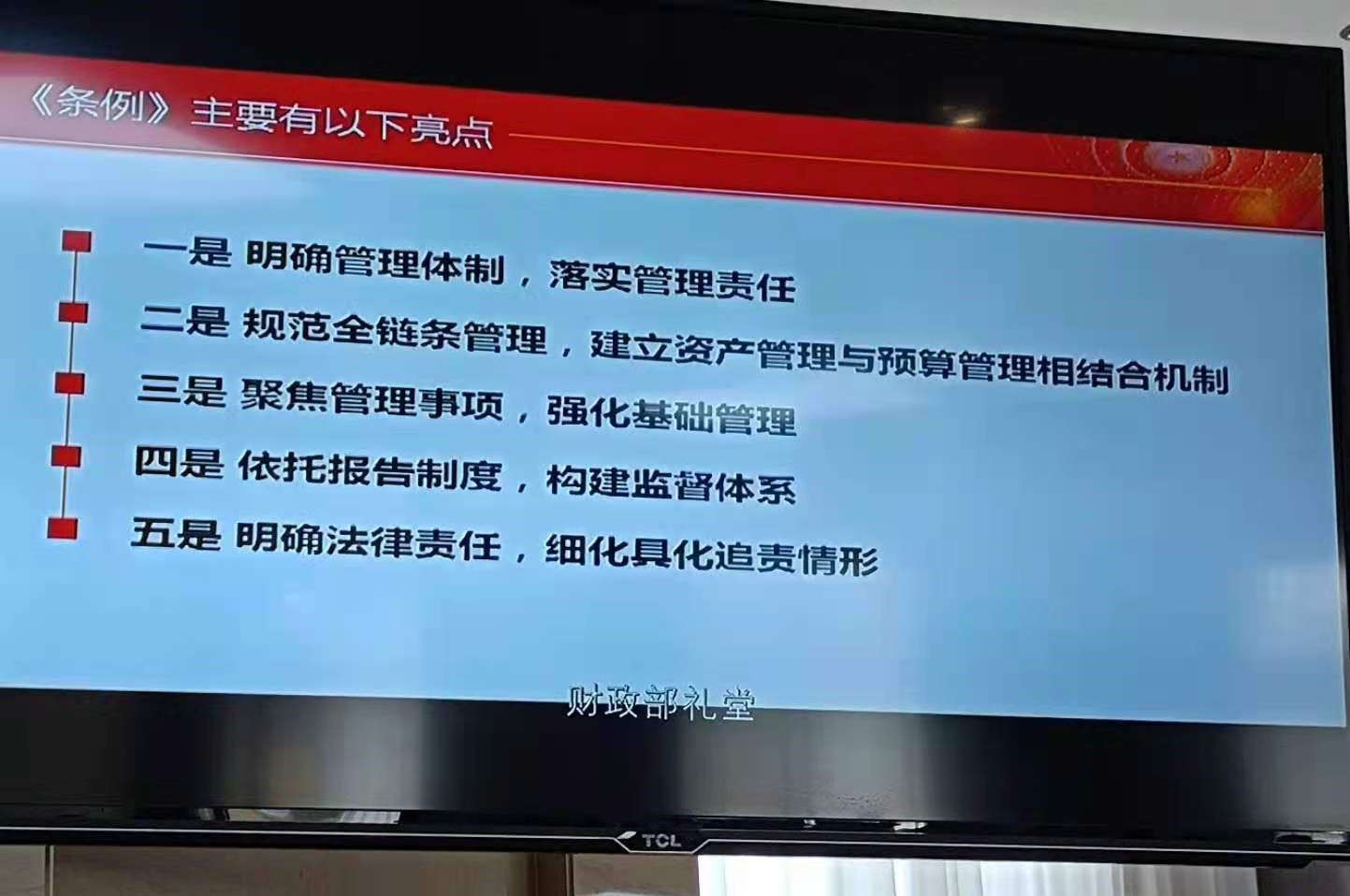 为深刻领会精准把握《条例》内容,有效贯彻落实《条例》要求,积极推动资产管理工作,按照陕西省教育厅2021年6月4日的通知要求,国资处史海青处长于6月8日前往陕西省财政厅参加了财政部召开的《行政事业性国有资产管理条例》培训视频会议,省属行政事业单位资产管理的负责人参加了培训。