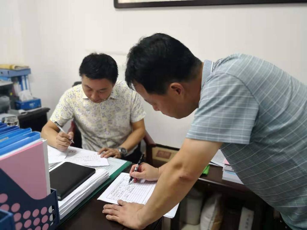 双方代表人员现场清点确认完毕后,我校党政办唐恭贺副主任同兴平市教育局代表于党政办公室签订捐赠文件,同时现场参与人员也进行了签字确认。