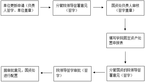 (三)经院领导批准后,国资处将需要更新或调配的办公设备家具清单交后勤保障处,后勤保障处按学院物资采购的有关规定,做好办公设备家具的采购、发放、上账和报账工作。