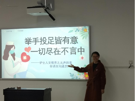 傅月玥老师以《举手投足皆有意一切尽在不言中》为题进行了护士人文修养课程非语言沟通艺术的思政教学,导入具体案例让学生先在课前预习的基础上进行对危重患者非语言沟通技术的视频录制,引入疫情期间感人影片,老师在进行讲解后学生再录制视频,通过两次视频对比体现教学效果。