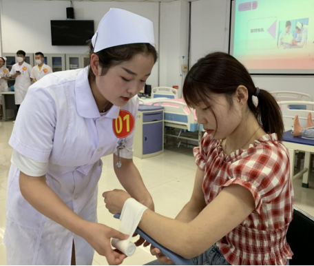本次大赛共设置护理专业19级心肺复苏、前臂骨折包扎,护理专业20级无菌技术、穿脱隔离衣,助产专业19级孕期腹部检查、新生儿抚触6个赛项。