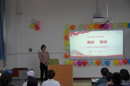 优秀学生代表向吴明护师献上鲜花,礼仪队全体学生表演了《听我说谢谢你》手语操,致敬抗疫英雄。报告会结尾,王瑜书记总结道:“真考验才能铸造真英雄”,在中国共产党的领导下,我们取得了抗疫保卫战的胜利,经此一疫,我们体会到了中国的制度优势、文化优势,我们每个人都要把自己融入这个时代、这个国家,把个人价值余国家民族利益紧紧结合在一起,充分展现自己的责任和担当。