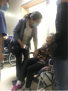 在每个楼层献花慰问的过程中,周彩云院长为学生介绍第三爱心护理院的管理制度、日程生活护理情况、老人照护过程中的安全问题以及与不同状态下老人沟通的方法及技巧。学生们主动与老人沟通,在参观学习中感受养老护理院的工作现状及老人日常生活护理情况。大家纷纷表示感受颇深,收益匪浅。