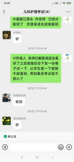 到了期末,临近考试,不用担心,我们的考试也可以线上进行。根据教务处关于考试的要求,为了保障考试顺利进行,护理学院成立了考试工作组,安排了考试巡查督导工作,及时发现并处理各种问题。