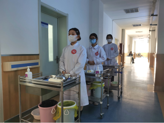 针对考评新模式,学校高度重视,自10月份以来,我校老年照护培训小组制定了严密的培训方案,师生们利用周末及晚自习时间进行培训学习。理论学习采取“线上自学+线下教师答疑”的方式进行,结合课程团队开发的《1+X老年照护》精品课程不断夯实理论知识,中间进行线上模拟考试,针对学生理论考试存在的问题,及时查漏补缺,不断督促成绩相对落后学生每日汇报学习情况。实操考试内容由老年照护组教师进行授课示教,学生利用自习时间进行操作练习。通过周密部署、严密组织、密切配合、线上线下巡视指导,整场考试秩序井然,展示了学生扎实的操作技能和良好的职业素养。
