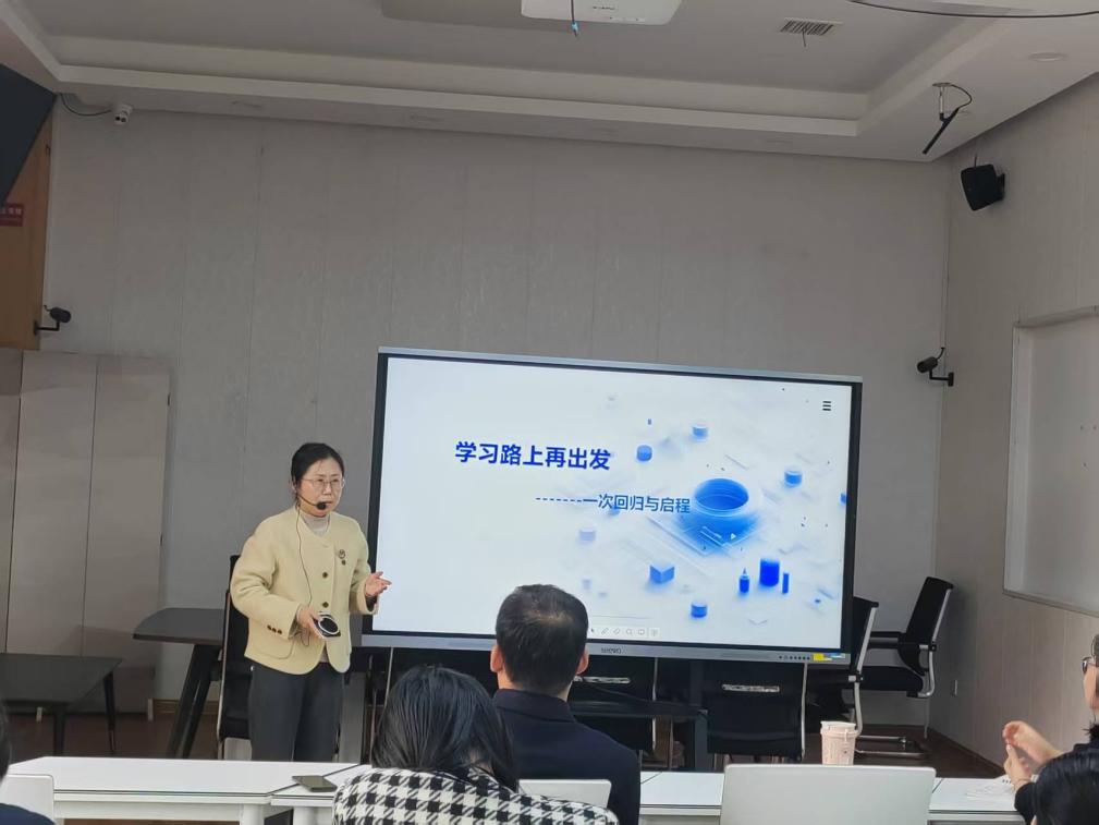 李东芳老师围绕“产教融合背景下‘双师型’教师发展路径”展开系统汇报。她结合教育家精神的内涵与新时代教师队伍建设要求,指出“双师型”教师不仅要有扎实的教学能力,更需具备企业实践经历与跨界融合素养。她提出通过“强化企业实践”“参与‘五金’建设”“提升数字化教学能力”等路径,构建“价值引领—专业精进—境界提升”的螺旋式成长通道,助力教师从“新手”走向“教育家型”教师。
