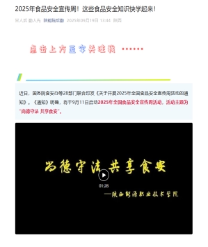 为增强宣传感染力,后勤保障处精心策划拍摄了以“尚德守法・共享食安”为主题的宣传视频,用鲜活镜头传递食品安全力量,全面展现校园“每一份餐食都有安全密码”的严谨。目前,视频已通过后勤官微发布,累计播放量突破2千余次。后续该视频还将作为新生入学、从业人员培训素材,实现食品安全宣传长效化。