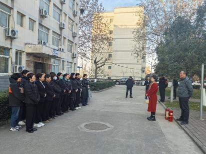 理论讲解结束后,培训转入实操环节。保卫处工作人员现场示范了干粉灭火器的“提、拔、握、压”使用步骤,对灭火器的检查方法、适用火情及操作注意事项进行了细致说明。周文昱处长亲自指导,楼管和卫生工们踊跃参与,逐一进行实操演练,从灭火器的开启到对准火焰根部喷射,整套动作连贯规范,理论知识在操作中得到有效转化。