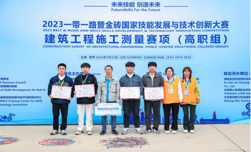 3月21日至28日,“2023一带一路暨金砖国家技能发展与技术创新大赛”建筑工程施工测量赛项全国决赛在云南国土资源职业技术学院举行。全国60余所学校110支参赛队进入总决赛,我校建测学院测量2201班袁福祥、郑玺瑞、宋国强、霍致龙四名学生组成的两支参赛队分别获三等奖。
