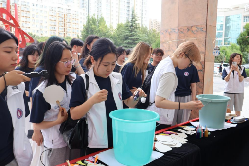 在校园文化介绍环节中,韩国学生为我校师生带来了特色节目,充分展现了他们的青春风采与文化自信,赢得阵阵掌声。我校邀请韩国学生体验非遗文化活动,参与非遗漆扇制作。学生们在专业教师指导下,亲身体验中国传统工艺的精妙。人文教育学院党总支书记买中傲现场书写书法作品,为师生呈现了一场文化气韵浓厚的书法艺术展示。全北大学师生纷纷表示,此次活动不仅开阔了视野,更感受到中华非遗文化的深厚底蕴。