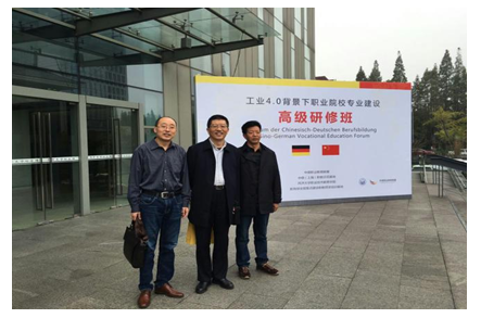 2016年11月14日至11月18日,院长刘予东带领党政办(外事办)、发展规划处、实训中心、机电系负责人分阶段先后参加了中德职业教育联盟举办的“工业4.0背景下职业院校专业建设”高级研修班。 研修班上,与会人员听取了有关专家主题为《中德职业教育模式及质量保障比较》、《职业教育的质量观与产教融合的思考》、《工业4.0与“中国智造”创造职业教育新机遇》、《工业4.0实验室、智能制造省级公共实训基地建设》、《新时期职业院校国际化办学之路》的报告,围绕德国双元制与国内职业院校的融合发展模式、专业提升及师资培养、职业院校建设思考等进行了交流与讨论,参观考察了上海工艺美术职业学院、上海市大众工业学校、同济大学嘉定校区、同济大学汽车学院、同济大学中德工程学院、同济创业谷、同济大学工程实践中心、中芬中心、上海电子信息技术学院等。 研修期间,刘予东在党政办负责人的陪同下拜访了同济大学教务处副处长王晓国教授,就工业4.0实验室建设、中德合作等关乎学院发展的问题听取了王教授的建议。在王教授的引荐下,党政办、发展规划处、实训中心、机电系负责人与同济大学中德工程学院副院长、工业4.0-智能工厂实验室主任陈明就学院工业4.0实验室建设进行了交流洽谈。