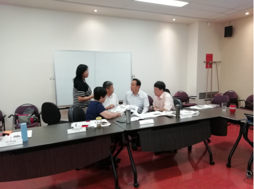 北美东部夏令时间2018年8月1日上午9:00(北京时间8月1日晚上21:00)学校赴加拿大干部访学团(简称SnyC20团)分组自行乘坐城市轨道交通工具(地铁)到达威尼尔学院接受安排的教学课程,经过了一天的时差调整,团员们精神抖擞,状态满满。威尼尔学院朱晓阳老师对SnyC20团的各位团员称赞表扬。