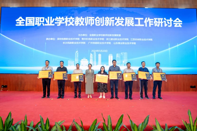 联盟成立大会上,审议通过了全国职业学校教师创新发展联盟章程、选举办法及联盟组织机构名单,发布了2024年联盟工作计划,7位共同体理事长进行了分领域共同体成立揭牌。刘浩作为我校常务理事单位代表接受了聘书和牌匾。