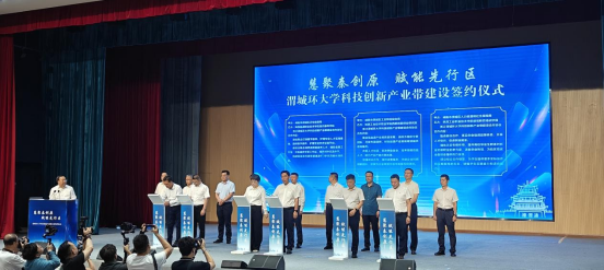 随后,环大学科技创新产业带签约活动在渭城区渭城中学举行,包括我校在内的渭城区6所高校与渭城区签订合作协议。党委书记刘予东作为签约见证人出席仪式,副校长罗继军代表学校与渭城区人民政府签订“环大学科技创新产业带”框架合作协议,现代康养学院党总支书记唐恭贺与渭城区卫健局签订“康养产业融合发展”框架合作协议。