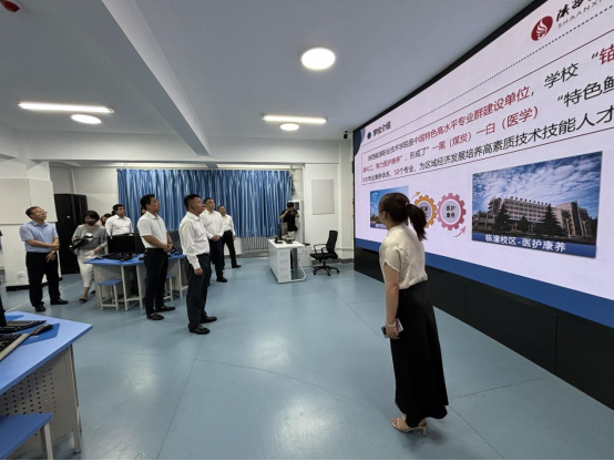 根据会议安排,咸阳市委副书记贾珉亮,渭城区委副书记、区长张永强,区委副书记李建清,副区长惠冰,市委科技工委、市委教育工委、市工信局等部门负责人,以及辖区内各高校领导一行18人来我校实地观摩康养实训基地。