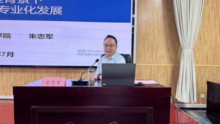 校长朱忠军以“数字化转型背景下职业院校教师专业化发展”为主题,为参训教师介绍了学校的校史校情、办学特色以及发展现状,从新一代信息技术、数字经济与数字化转型、职业院校教师专业化三方面为新教师讲授作为职业院校教师如何实现专业化发展。最后,他希望新教师认真做好职业规划,充分发挥个体主观能动性,积极探索教师专业化发展路径,将自我成长融入学校教育教学事业发展,真正实现“大我”和“小我”的共同成长。