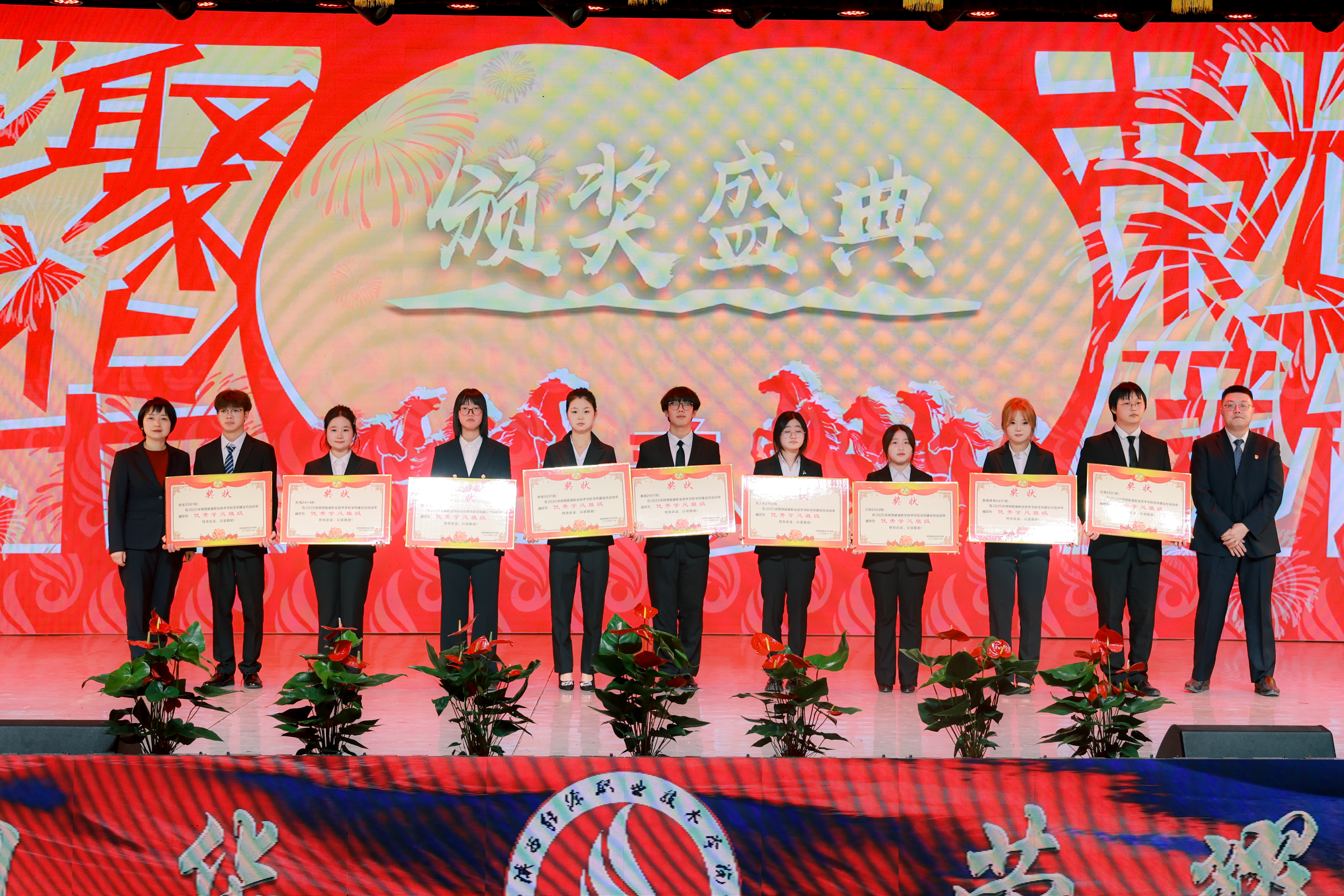 晚会在暖场视频《新年快乐》的温馨氛围中拉开序幕,欢快的旋律与真挚的祝福将师生们的情绪相连;开场舞《盛世欢腾迎新春》惊艳亮相,表演者们手持色彩艳丽的舞龙、舞狮道具,灵动的姿态与磅礴的气势象征着学校在新的一年里蓬勃向上的发展态势;接下来的颁奖环节分为三组,第一组,由学生家长向优秀学子颁奖,同学们接过来自父母手中的荣誉证书,这不仅是对他们勤学笃行的肯定,更凝聚着家庭默默的付出与殷切的期盼;第二组,校领导为辛勤培育子女的家长代表颁发“优秀家长”证书,致敬他们在孩子成长路上的陪伴与奉献,家长们接过这份来自学校的荣誉,眼中满是感动与欣慰;第三组,部分家长向二级学院赠送锦旗,以此表达对学校办学育人、铸就成长平台的诚挚感谢;最后,独唱《枕着光的她》,歌声温柔且有力量,传递出了能院学子对梦想的坚守与对未来的憧憬。