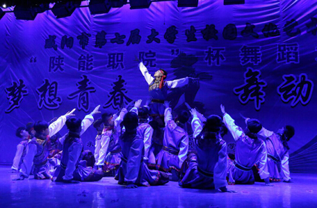来自咸阳师范学院、西藏民族大学、陕工职院、咸阳职业技术学院等10所驻咸高校共15支舞蹈参赛队齐聚一堂,共同呈现了一场艺术盛宴。比赛开始前,我院党委副书记副院长何从军、共青团咸阳市委副书记刘杰分别致辞。决赛于晚上七点开始,陕西服装工程学院一支优美的《茉莉花》舞蹈为大赛拉开了序幕。我院选送了两支舞蹈作品《小伙 四弦 马缨花》和《鸿雁》,舞蹈演员们倾情合作,投入的表情、完美的舞蹈动作赢得了全场欢呼。各高校参赛舞蹈作品分别以古典、民族、现代等不同形式,倾诉了爱国、恋乡的强烈情感,表达了当代大学生对青春、梦想的执着追求,同时也体现了高校学子对艺术、对美的独特理解和表现力。