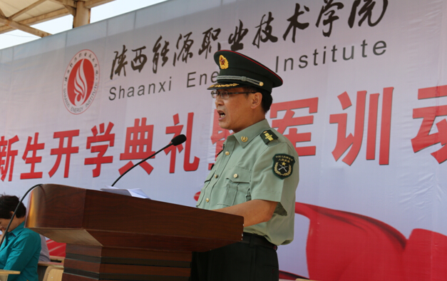 2015级新生军训动员仪式首先由党委副书记郭开龙同志作军训动员讲话。随后,武装部副部长张栋同志宣读了2015级新生军训实施方案。