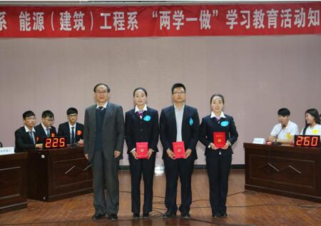 本次知识竞赛是两系“以赛促学,学做结合”、深入开展“两学一做”学习教育的一次创新之举。竞赛以党支部为单位,共有四支参赛队伍,分别是机电工程系党总支教工党支部代表队、学生党支部代表队;能源(建筑)工程系党总支教工党支部代表队、学生党支部代表队。每支代表队有三名选手。竞赛分为个人必答题、抢答题、即席演讲、风险题等四个环节,并在竞赛间隙穿插观众答题环节。经过激烈角逐,能源(建筑)工程系党总支教工党支部代表队获得一等奖,机电工程系党总支教工党支部代表队获得二等奖,其余参赛队获得三等奖。
