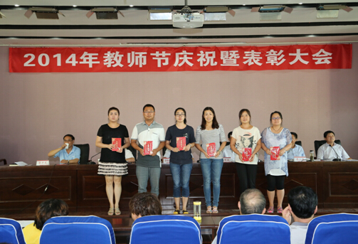 院党委书记令狐培选同志首先代表学院宣读慰问信,向全院广大教职员工致以亲切的节日问候和良好的祝愿,向历年来为学院发展付出心血和汗水的同志们表示衷心感谢和崇高敬意。副院长詹三瑞同志宣读学院《关于表彰2013-2014年度先进集体、优秀教师、先进教育工作者、模范班主任、优秀辅导员的决定》;副院长郭开龙同志宣读获得厅局级以上荣誉的先进集体和个人名单;副院长赵龙波同志宣读学院2013-2014年度教育教学成果名单及长期从事煤炭事业工作者名单。学院领导为受到表彰的10个先进集体和111名优秀教师和先进个人颁奖。优秀教师代表基础一部教师王利荣和学生代表机电工程系学生滕雨鸽分别发言。