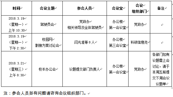 2018年3月19日至3月23日(第3周)会议室使用预通知