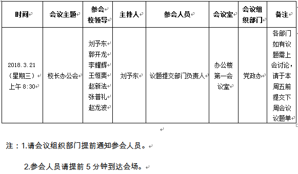 2018年3月19日至3月23日(第3周)会议安排预通知