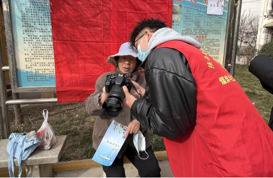 志愿者们为居民免费测量血压、按摩、艾灸,提供健康咨询服务;在社区开展防疫知识、垃圾分类知识宣传;帮助年迈的老人清理、维修手机,教他们使用微信、抖音等软件。摄影组的同学则用一张张照片记录美好瞬间,定格大家的幸福笑容。