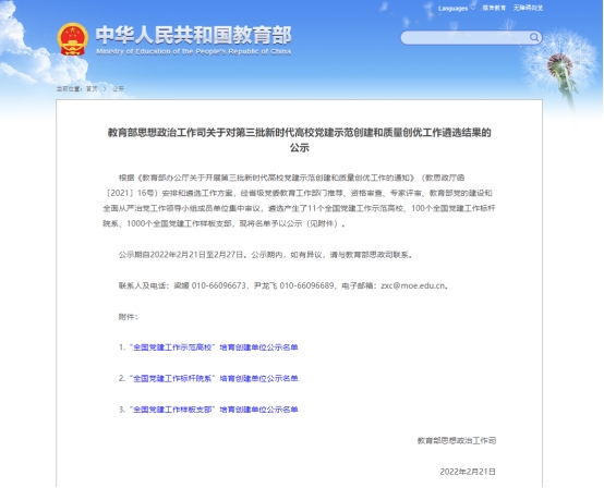 入选第三批全国党建工作样板支部培育创建单位的通知