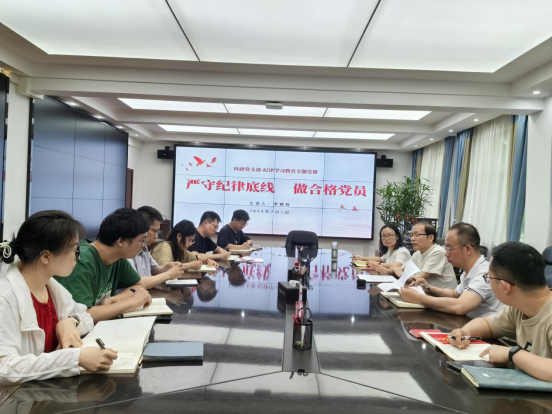 党委副书记任向明面向机关党总支学管党支部讲授党课。解读了《中国共产党纪律处分条例》,希望全体党员坚持全面从严治党基调,推动党的纪律越往后越严;坚持政治统领作用,始终把政治纪律和政治规矩放在首位;坚持胸怀“国之大者”,服务党和国家工作大局,同时服务学校工作大局;坚持纪严于法,维护党规党纪的绝对权威。