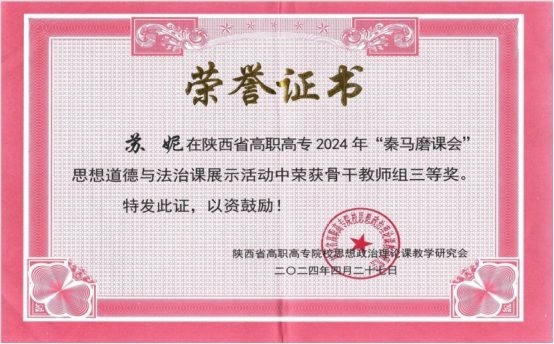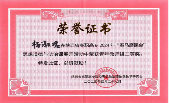 另外,我校教师杨淑妮、苏妮在思想道德与法治课程教学展示活动中分别获二等奖、三等奖。