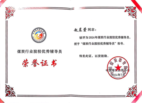 近日,中国煤炭教育协会公布了2024年煤炭行业院校优秀辅导员评选结果。我校推荐的康养学院辅导员赵晨萱同志获评该荣誉称号。