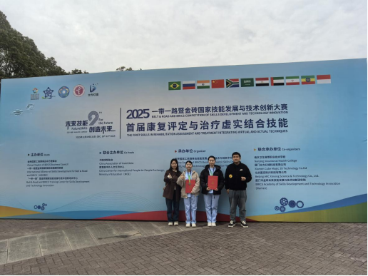 12月20日至22日,2025一带一路暨金砖国家技能发展与技术创新大赛首届康复评定与治疗虚实结合技能赛项全国总决赛在南京卫生高等职业技术学院举行。经过激烈角逐,我校代表队在高职组总成绩排名第三,晋级世界赛,康复治疗技术专业2402班学生边思钰及2405班学生高琪琦荣获银奖,教师史安娜、王力彬获优秀指导老师。
