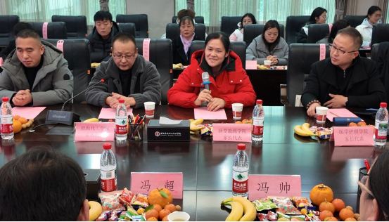 随后在办公楼三楼会议室召开了“喜迎元旦共话成长 同向同行共谱华章”家校协同育人座谈会。党委副书记校长朱忠军、党委副书记副校长田昊、学工部负责人及各二级学院党总支书记,学生代表,相关工作人员出席本次会议。