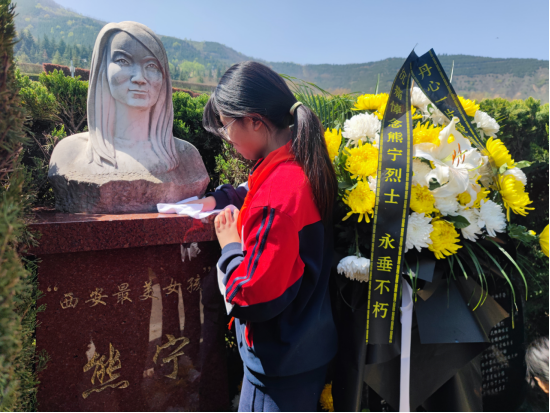 同日,我校携手邵平店小学带领45名师生前往“西安最美女孩”熊宁纪念园开展祭奠活动,师生们怀着无比崇敬的心情祭奠这位用生命诠释大爱无疆的时代楷模。大家整齐列队,向熊宁雕像鞠躬献花,深切缅怀她热心公益、扶贫济困、无私奉献的崇高精神。师生代表现场讲述熊宁的感人事迹,她放弃优渥的生活,远赴青海玉树投身公益事业,在雪域高原播撒爱心,最终因意外不幸牺牲,用29岁的年轻生命书写了人间大爱。聆听事迹时,师生们深受感动与鼓舞,纷纷表示要以熊宁为榜样。校团委也发起向熊宁同志学习的倡议,号召大家学习她助人为乐、无私奉献的崇高精神,学习她勇于担当、扶贫助困的可贵品格,让爱心传递、让大爱永存。团学干部代表现场发言,表示要将无私奉献的精神融入日常学习和生活中,自觉践行社会主义核心价值观,主动承担社会责任,用实际行动传递爱心、温暖他人,让榜样的力量照亮前行之路。