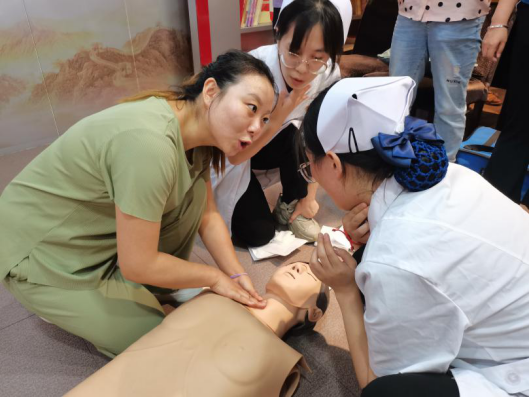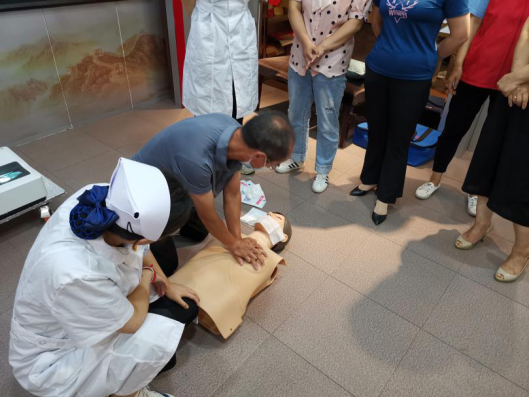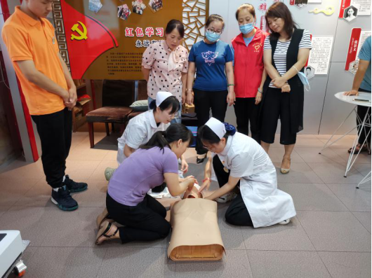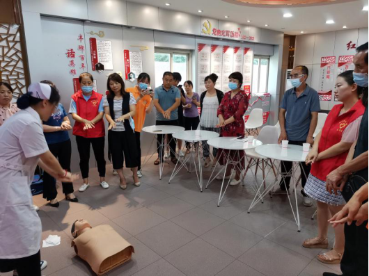 下午,实践团一行来到川口社区,实践团索喆怡结合前一天在实践团在照金的学习成果为大家带来了主题为“习仲勋在陈家坡”的党史主题宣讲;实践团董露和齐怡佳分别进行了海姆立克施救法和心肺复苏知识实践教学演示。社区工作人员和当地居民摩拳擦掌、跃跃欲试,一起进行了实操练习。