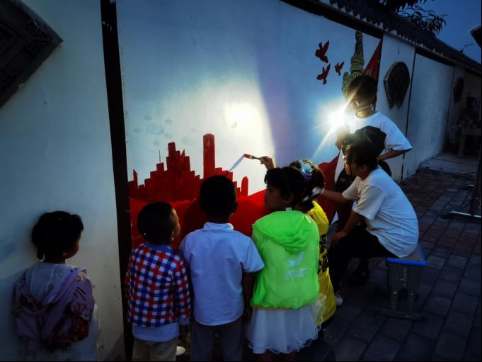 实践队员绘制“五四革命”主题墙绘