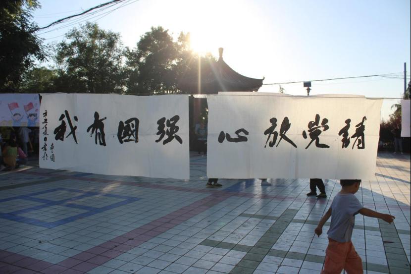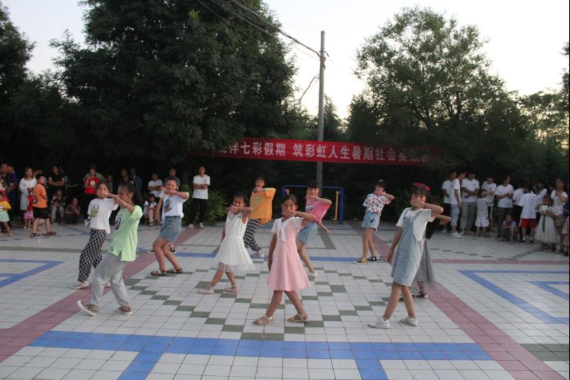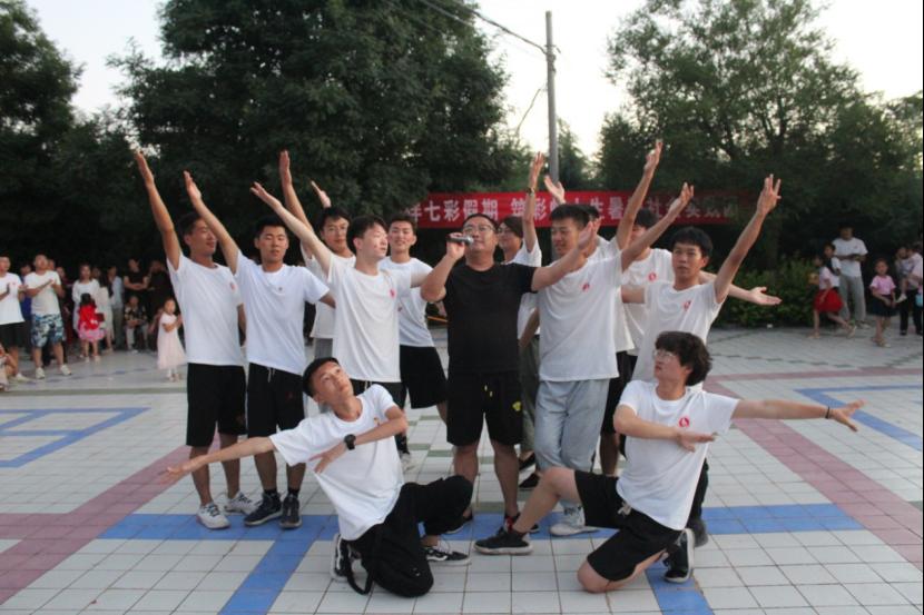 晚上7:30分枣园镇广场上人山人海,此次社会实践成果汇报演出在我校暑期社会实践团和枣园村广场舞队共同带来的开场舞《最炫民族风》中拉开了帷幕,饱含对祖国感恩之情的歌曲《我和我的祖国》、充满民族特色的舞蹈《欢腾的苗寨》、悠扬曼妙的舞姿《爱我中华》、铿锵有力的诵读《请党放心,强国有我》,实践队员于当地小朋友带来的武术表演《男儿当自强》,师生同台表演的歌伴舞《再一次出发》等精彩节目赢得了现场观众的阵阵掌声,汇报演出在暑期社会实践团全体成员和枣园镇村民和孩子们共同演绎的大合唱《没有共产党就没有新中国》中圆满落下帷幕。