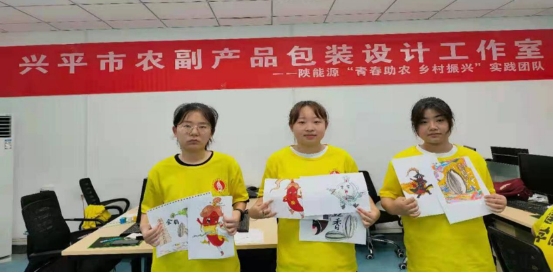 7月17日至7月18日,成立兴平市农副产品包装设计工作室,实践团队成员根据实地调研结果进行手绘作品创作。