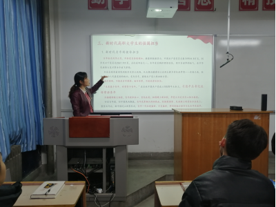 为进一步增进对中国共产党百年奋斗光辉历程的认识,增强学生爱党爱国、强国担当的责任感和使命感,根据学校党史学习教育工作要求,结合党的十九届六中全会精神宣讲,智能制造与信息工程学院党总支书记曹俊侠为学生讲思政课。