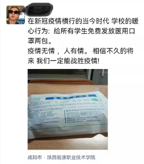 23日晚自习,考虑到近期同学们无法外出购物,学工办利用晚自习时间为所有在校生发送防疫口罩,同学们对于学校的贴心关怀表示由衷的感谢。同时召开了团干部志愿防疫服务会,强调团干部要做好青年学生的思想引导工作,时刻提醒同学们带好口罩。