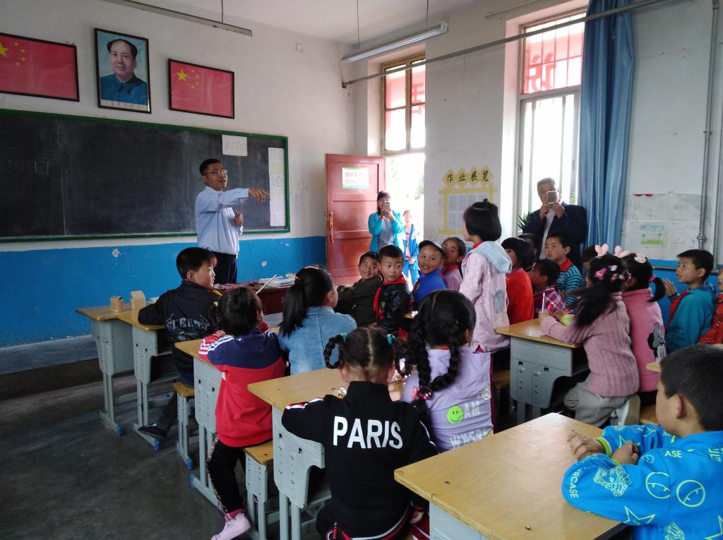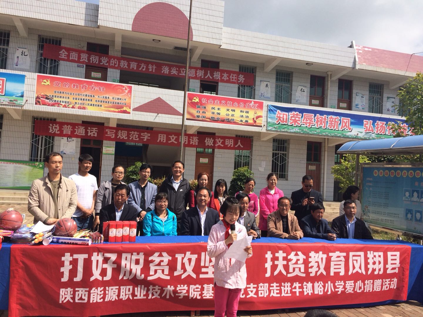 21日上午,基础1部所有党员驱车3个小时,来到了陕西省凤翔县董家河乡牛钵峪村小学。在活动现场,牛钵峪村的村支书、学校的教导主任及基础1党支部书记郭群虎同志分别作了讲话,学校全部23名学生唱“少先队队歌”表示欢迎和感谢。随后,基础1党支部所有党员给每一位学生发放了书包、文具等学习用品,为学校所有8名坚守在乡村一线的教育工作者发放了水杯,为学校捐赠了篮球、乒乓球、羽毛球、跳绳等体育用品。同时,学生代表发言表示感谢并承诺要努力学习成为国家栋梁。