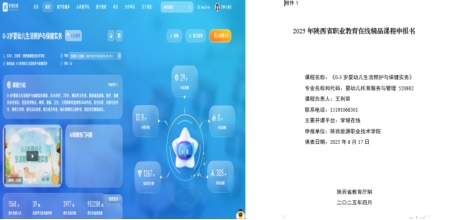 托育教研室以提升人才培养质量为核心,聚焦行业岗位能力需求,修订完成2025年托育专业人才培养方案,优化课程体系结构。其建设的《0-3岁婴幼儿生活照护与保健实务》在线课程作为教学模式创新的核心载体,融入项目式、情境化等多元教学方法,通过动态优化教学环节显著提升教学实效。该课程首期开课便实现页面浏览量291512次,累计选课人数908人,累计互动次数481次。教研室通过常态化进度检查与研讨,持续强化课程维护与内容升级,教学效果显著,在此基础上已完成2025年陕西省职业教育在线精品课程申报书撰写工作,未来将进一步推进课程资源迭代与教学模式升级。