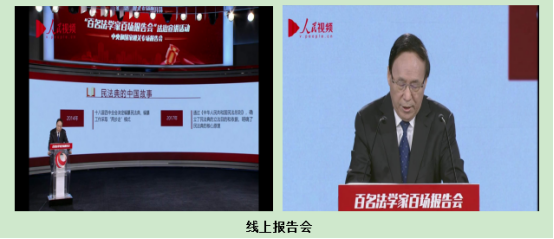 本次报告会由中国法学会党组成员、学术委员会主任张文显做宣传贯彻《中华人民共和国民法典》报告。报告会通过《民法典》的形成过程、历史地位、核心要义、实施要则等重要方面,对民法典进行了全方位的解读。
