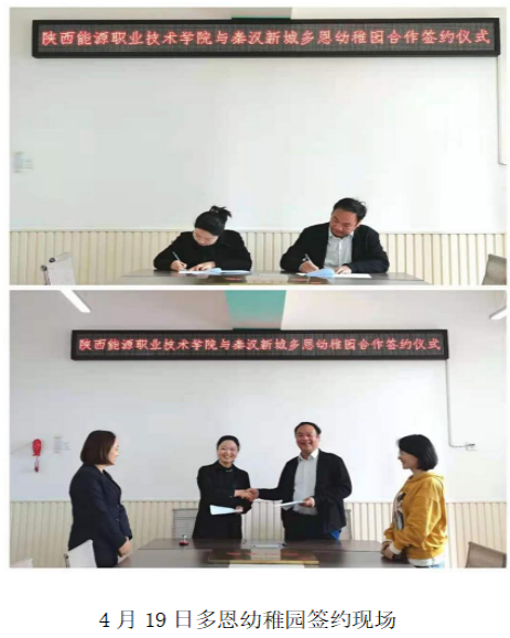 2021年4月19日-20日,陕西能源职业技术学院人文与教育学院“实习基地”挂牌仪式分别在秦汉新城多恩幼稚园、咸阳市秦都美育幼儿园举行。